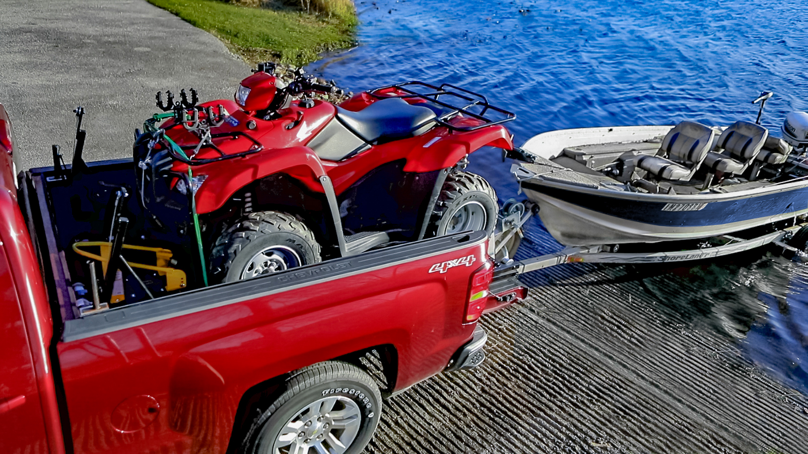 The Take-My-Toyz® is an American Designed and Manufactured innovative Toy Loader and is unlike other toy loaders or toy haulers in the market. The entire system loads quickly into a full size pickup bed in minutes and it’s ready for a single person to load and unload a motorized vehicle that will fit on the sled. The unique feature is that your toy can be driven onto the sled while it’s flat on the ground. This makes it so simple and completely safe. It’s the perfect truck accessory for taking your toy with you.